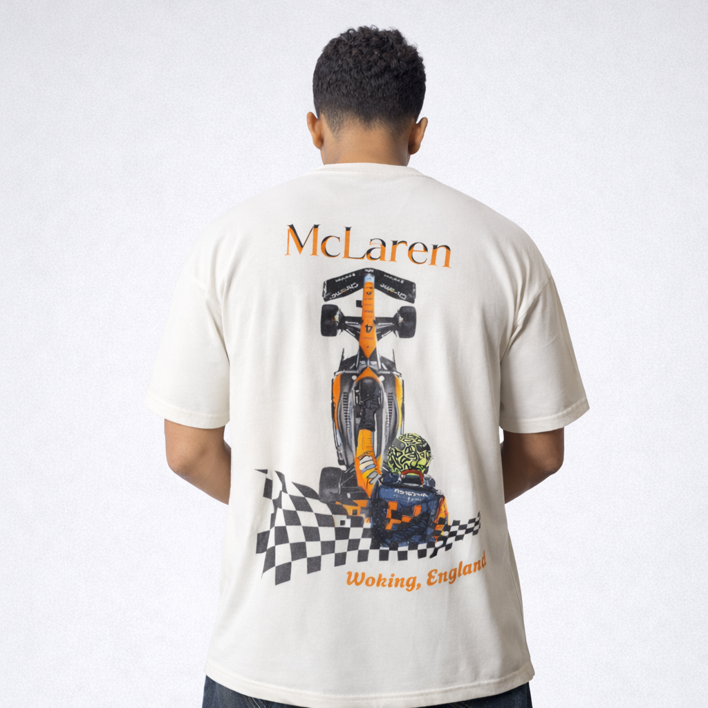 A premium oversized tee inspired by McLaren racing heritage, global motorsport culture, and modern streetwear—crafted for those who live fast, travel often, and never blend in.