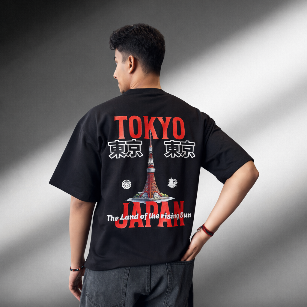 A statement piece inspired by the energy of modern Tokyo, designed with a global travel mindset. This oversized black T-shirt blends bold streetwear attitude with a refined, luxury edge—made for those who move between cities with confidence and ease.
